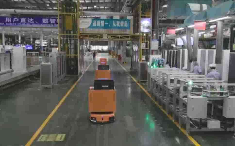 为车载冰箱物流配送打造的智能解决方案,,,包含产中物流通过潜伏举升AMR搬运至线边,,,产后成品物流智能仓储,,,,流程包含产中物流智能齐套入库,,线边安灯叫料AMR智能配送至线边,,,成品入库、、、出库,,,,通过无人堆高车机器人,,,,智能仓储管理替代人工作业管理,,实现更高存储、、、、更高效率、、、更具柔性化的解决方案。。。